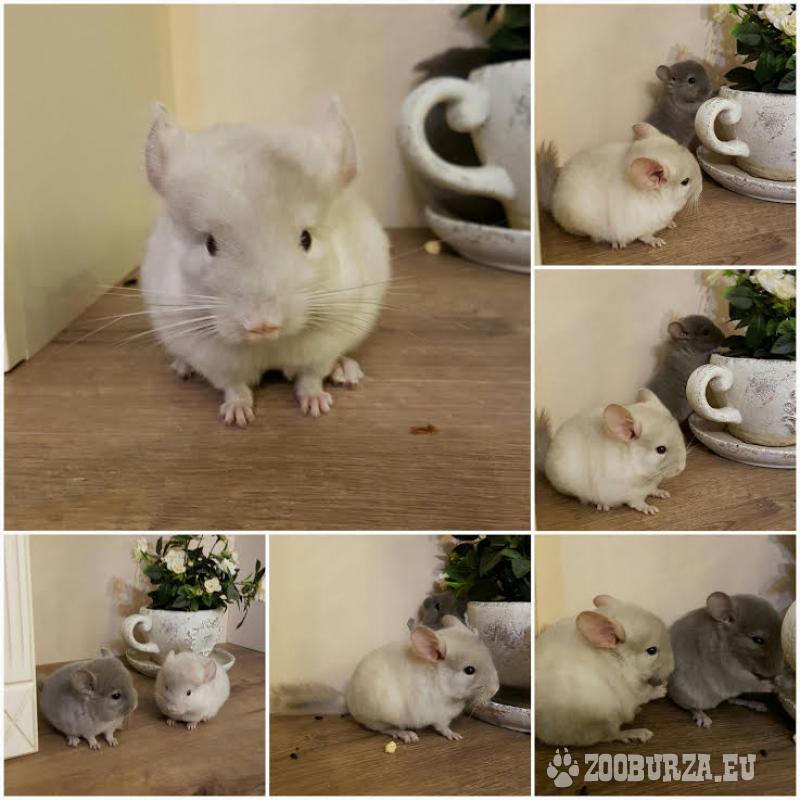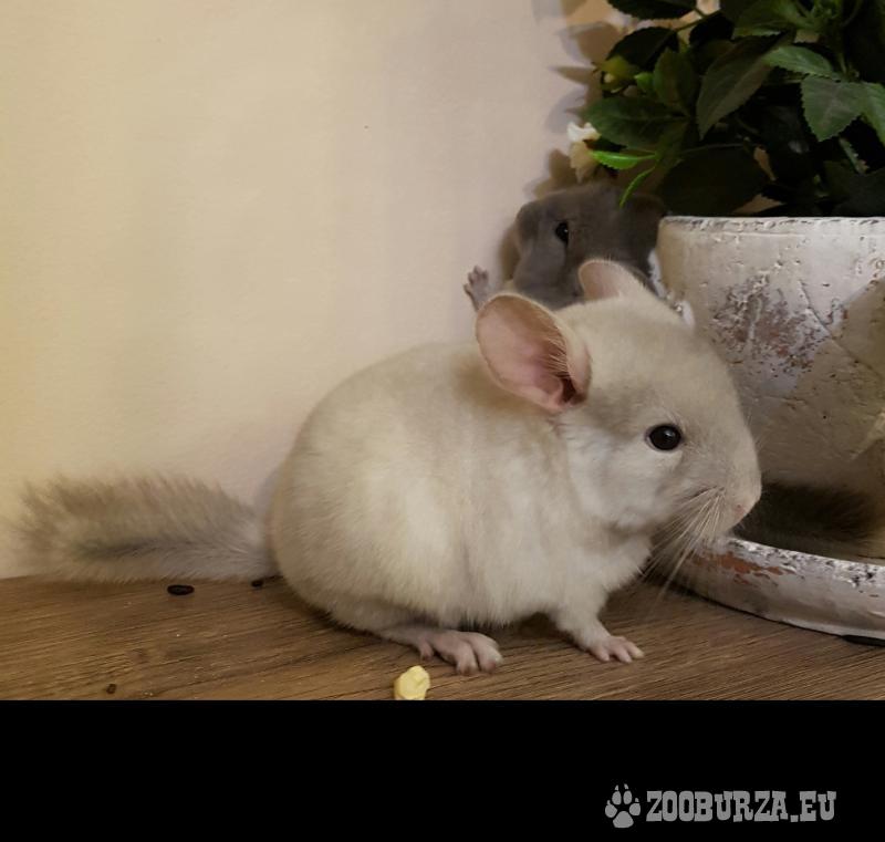 Popis: Ponúkam na predaj 2 činčilky-samčekov narodených 13.02.2017 . Farebná mutácia TAN Light 317g a Ebony Violet 305g . Rodičia matka Pink White EC/VC (590g), otec Dark Ebony (630g). Činčilky sú veľmi krotké, zvyknuté na ruky a na bežný ruch v domácnosti. So sebou si odnesú preukaz pôvodu a krmivo na ktoré sú zvyknuté. Cena za jedného 50 EUR. Sú zohratá dvojka tak ak pôjdu spolu, tak cena dohodou :D. CHS-Činčily z Podhája