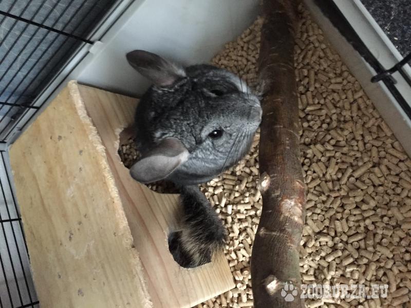 Popis: Predám polročnú činčilu samčeka aj s veľkou klietkou. Predávam ho kvôli tomu že sa nestíham mu venovať kvôli práci.