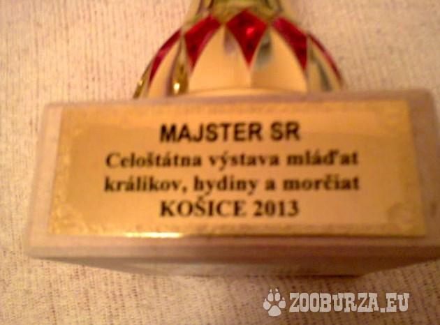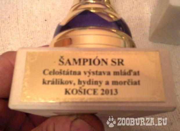 Popis: Králiky sú z vrhov 2013, chovné, tetované (klub ČV), odčervené, očkované proti moru a myxomatóze, samce aj samice, ocenené na celoštátnej, klubovej, resp. oblastných výstavách. Osobný odber. Po 6. decembri cena vyššia o 5 EUR