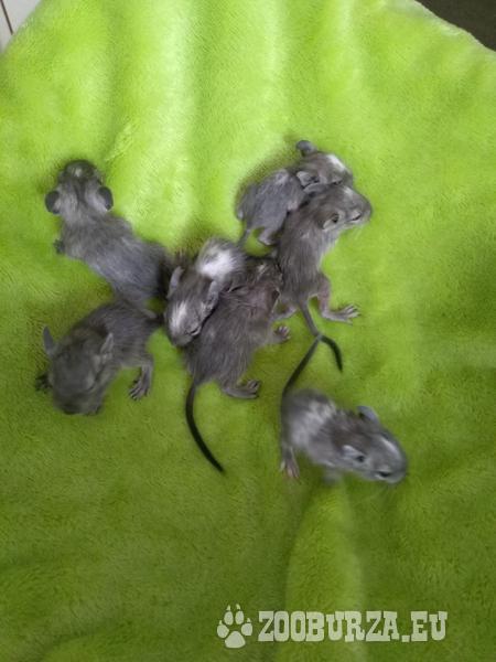 Popis: Dobrý den, nabízím k rezervaci barevná miminka osmáka degu. Miminka mohou odejít do nového domova začátkem května a to buď k jinému osmákovi a nebo ve skupince. Každý osmák dostane výpis předků. S chovem moc rád poradím. Možný osobní odběr a nebo službou privezzvire.cz Praha