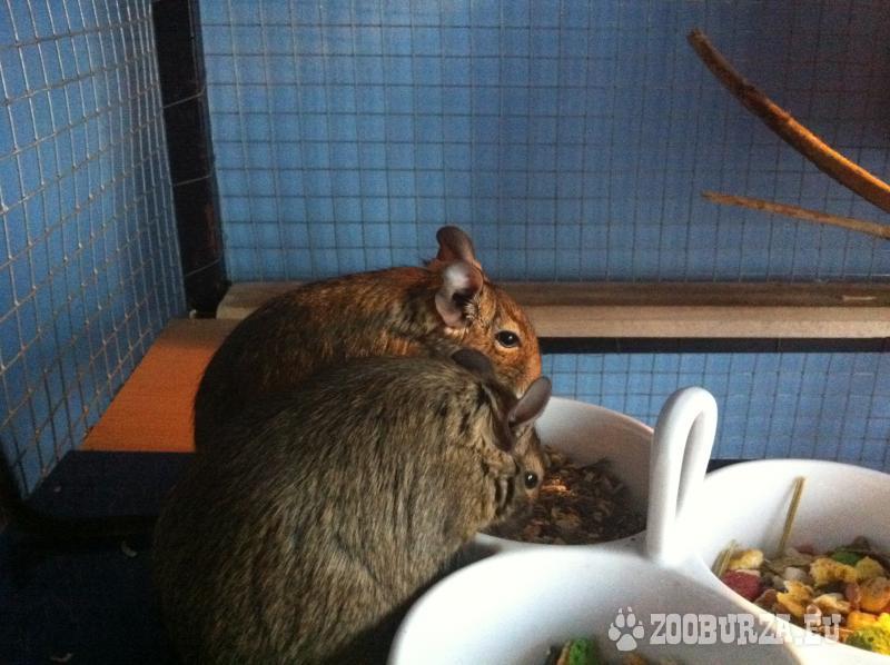 Popis: Darujem 2.rocny parik osmakov degu, zdravych, naucenych chodit na ruky. Osmakov darujem aj s prislusensvom ako - kolotoce, misky,vyhrevna lampa, napajacka, jedlo, seno,pelety, drevene domceky, a ine zadara.Darujem z rodinnych dovodov.Osmakov je mozne zobrat samostatne alebo spolu s klietkou za 100 euro.Klietka je 3 poschodova, rucne robena cize da sa v nej vsetko obmienat. Iba k spolahlivym majitelom.