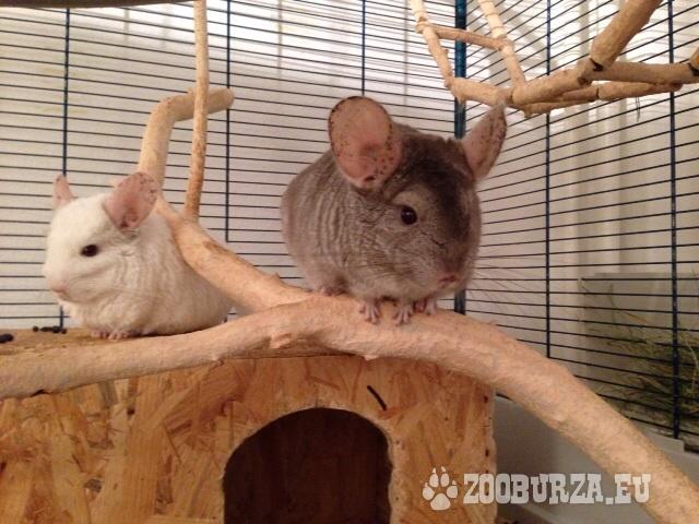 Popis: Predam parik cincil, vhodny i na dalsi chov, samicka hetero beige, vek 3 roky, mala uz 4 mladata, raz dvojicky s predoslym partnerom a dvakrat po jednom mladatku so sucasnym samcekom, velmi dobra matka, kludnej povahy, rada sa necha hladkat a skrabkat pod krkom :), pre svoju dobru povahu by bola vhodna aj na mazlika . Vahu ma okolo 640 g. Jej partner pink white ( mozno velvet ), s krasnym hustym kozuskom, vaha 660 g, vek 2,5 roka. Parik spolu zije v harmonii, su kludni, nebiju sa, o mladatka sa vzdy spolu pekne starali. Je to moj najmilsi parik z mojho chovu, prave odchovali samceka. Redukujem chov, hladam novy domov pre tieto mile zvieratka. Predam ich prednostne spolu, pripadne samostatne.