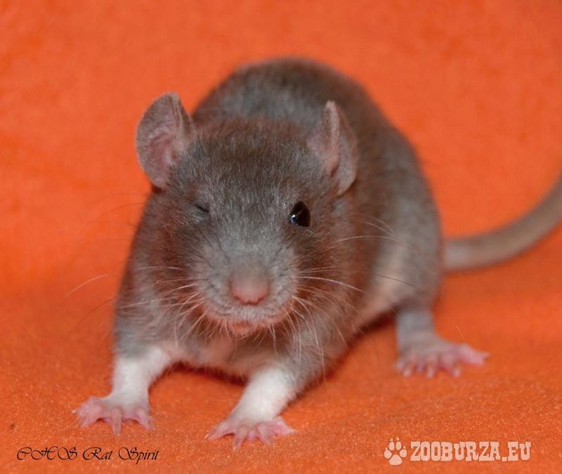 Popis: CHS Rat Spirit ponúka ihneď k odberu miminká potkaníkov z vrhu B s PP a VP 4. Odber možný v Nitre a po dohode aj v Považskej Bystrici, Bratislave alebo Trnave. Voľní sú samčekovia s dumbo aj štandard uškami, vo farbách čierna, ruská modrá, aguti a ruská modrá aguti, so srstičkou velveteen aj štandard a znakmi self a berkshire. Miminká sú riadne socializované, vymaznané a naučené na kontakt s človekom aj psami. Viac info na stránke www.chsratspirit.weebly.com alebo mailom alebo telefonicky.