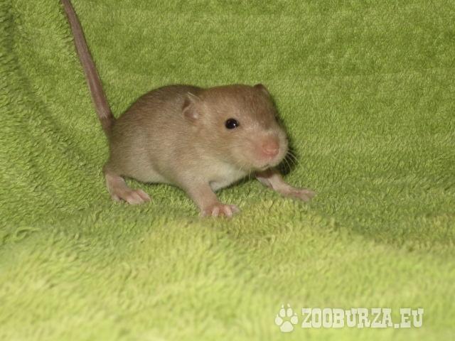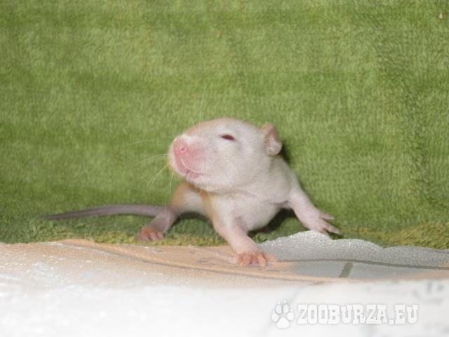 Popis: Chovateľská stanica Moon Starr prijíma rezervácie na potkaníky s rodokmeňom vo varietách dumbo, štandard a rex. Farby srsti máme: čierna, siamská, čiernooká siamská (BES), barmská, americká/ruská modrá a mink. Mláďatká budú v čase odberu riadne socializované, poriadne vymaznané, naučené na každodenný kontakt s človekom a inými potkaníkmi, vhodné hlavne ako domáci miláčikovia, príp. na chov a výstavy. Viac foto a info na webe: http://www.chsmoonstarr.estranky.sk/