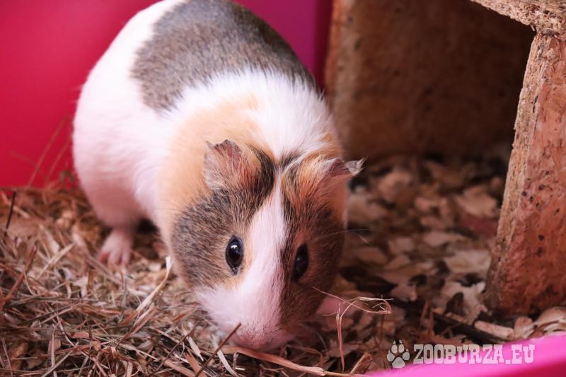 Popis: Predám morské prasiatko s klietkou. Je zvyknuté na ľudí. Ku klietke dám aj domček, misky, napájačku, potravu, hobliny. Cena 23€.