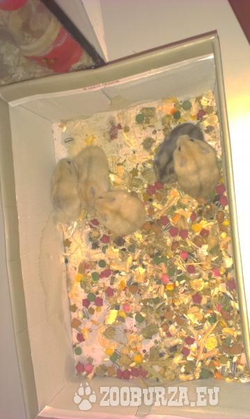Popis: Predám 5 škrečkov.Sú ešte malinký.Majú 3 týždne.cena je dohodou.Píšte správu.
