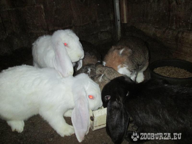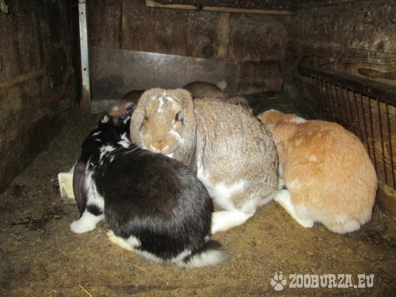Popis: Ponúkam králiky plemena Francúzsky baran - vek 6mesiacov: samec - hnedý strakáč, samice - hnedý strakáč, žltý strakáč, čierny strakáč, hnedý. Vek 7mesiacov: samec - biely 2x, čierny, samice - železitý strakáč, zajačitý strakáč. Očkovanie proti moru a myxomatóze. Cena - 3eurá/mesiac veku.